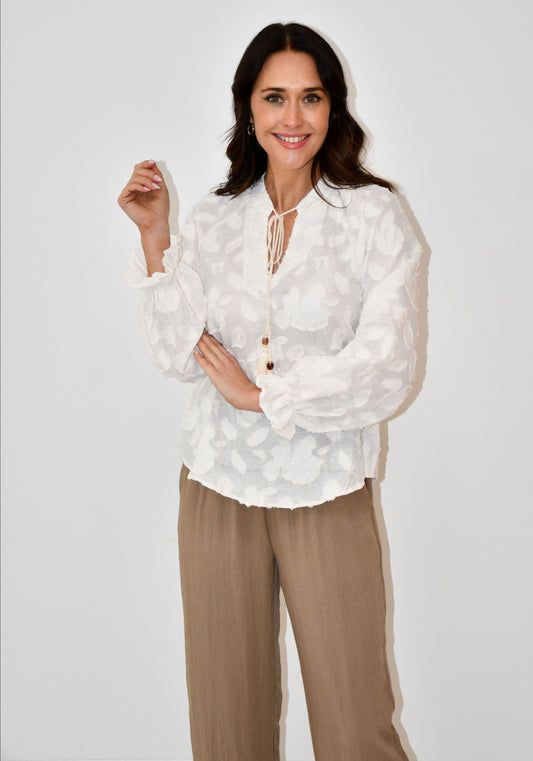 LX2536J - Embroidered Stripe Cotton Blouse