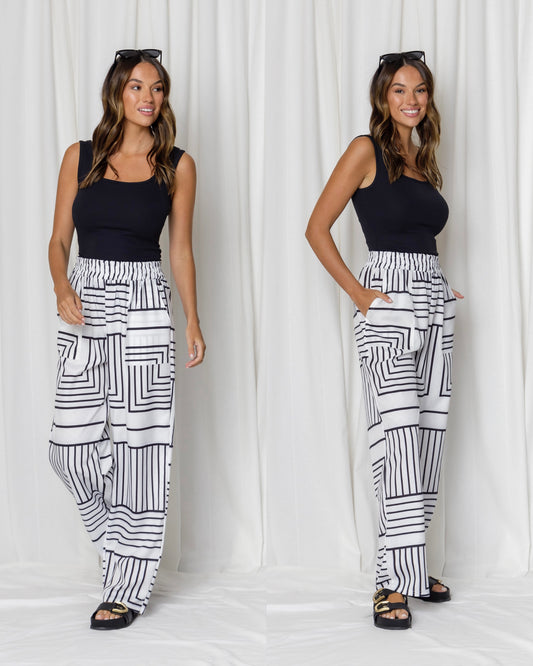 MC122-2 IZZY LINEN BLEND STRIPE ELASTIC SHIRRED WAIST PANTS