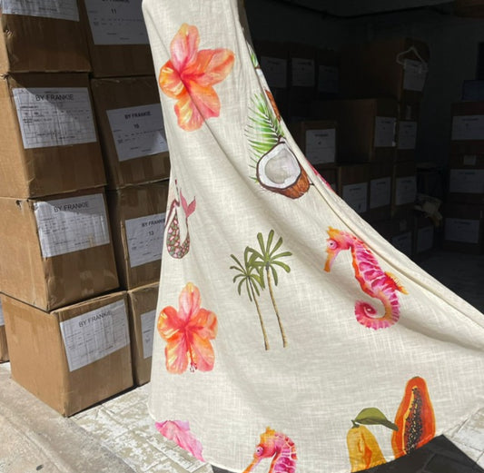 930-51 Mermaid Island Print Strapless Long Dress (6)