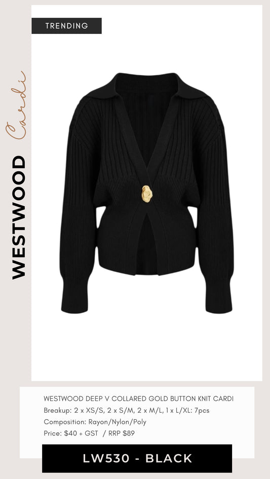 LW530 WESTWOOD DEEP V GOLD BUTTON KNIT CARDI