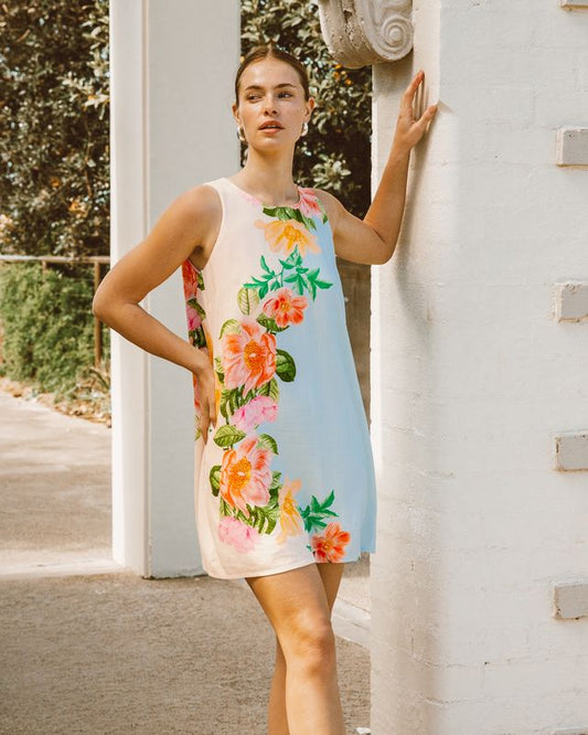 TFE11158-2/O BOTANICAL BLISS BLUE MINI DRESS