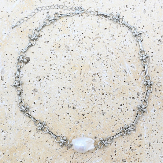 JFD-B-SV Silver and Pearl Necklace