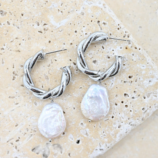 JFK-E-SV Silver and pearl earrings
