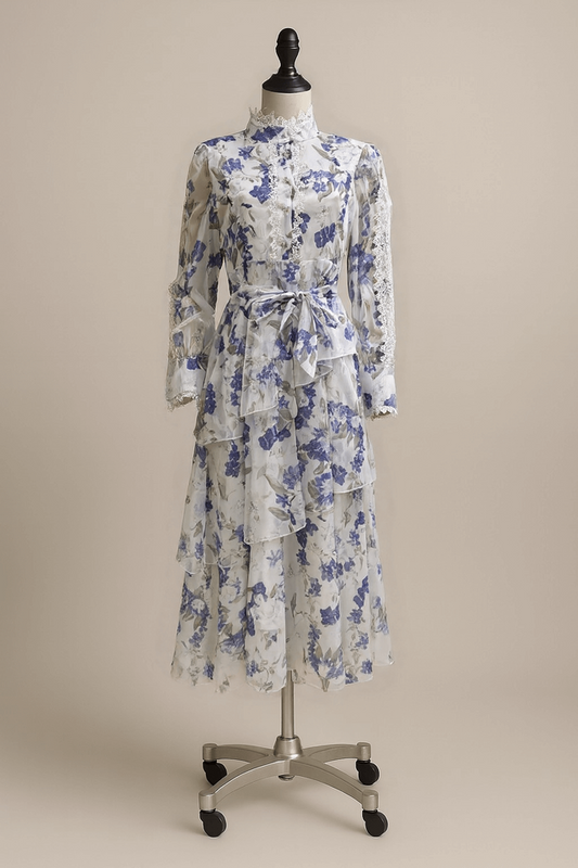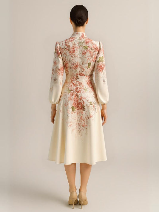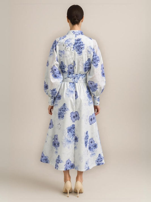 XW20707-10J - FLORAL BELTED MIDI DRESS