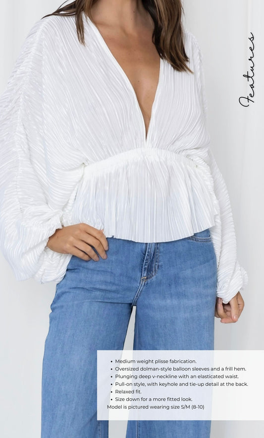 LS526 -WILLA PLISSE BALLOON SLEEVE BLOUSE - WHITE