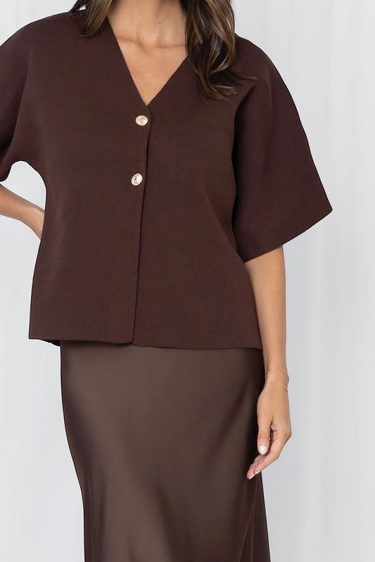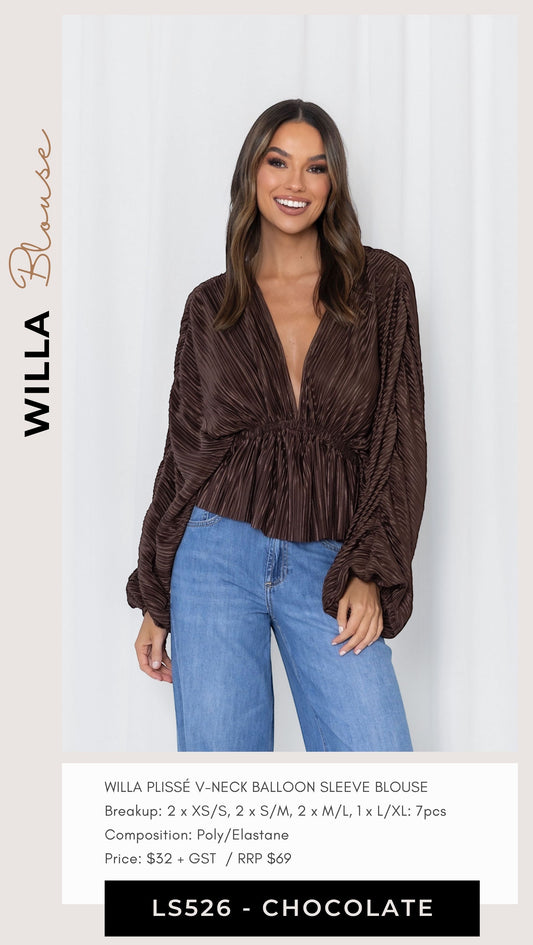 LS526 -WILLA PLISSE BALLOON SLEEVE BLOUSE - CHOCOLATE