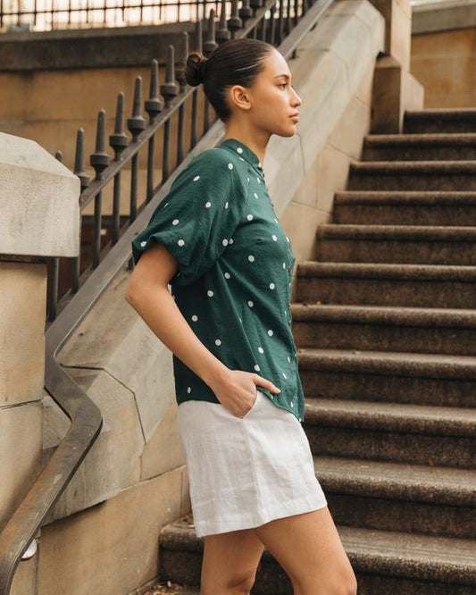 TFE10870/O DOTTED DELIGHT BUTTON UP BLOUSE
