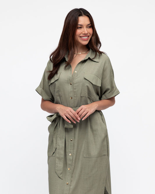 LOL70460/O PLAIN POCKET BUTTON UP DRESS