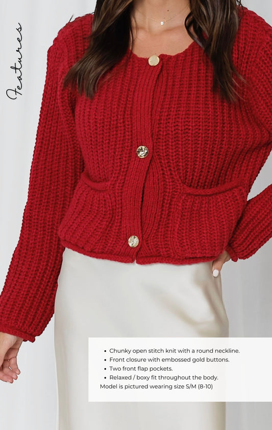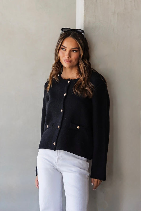 LW535 GOLD STATEMENT BUTTON KNIT CARDI