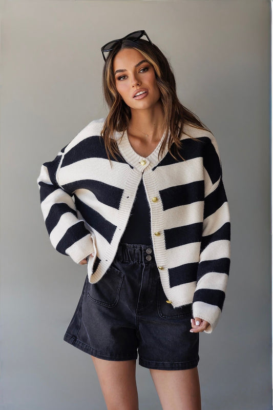LW5350-2 GOLD STATEMENT BUTTON KNIT CARDI