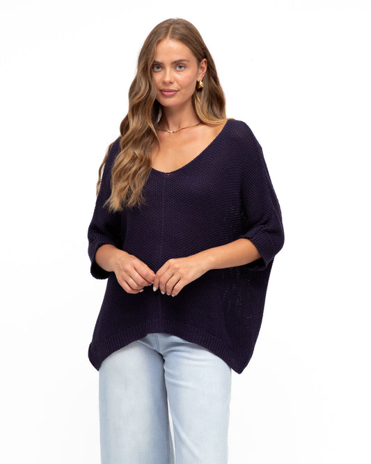 LOL10991/H V NECK KNIT SHORT SLEEVE