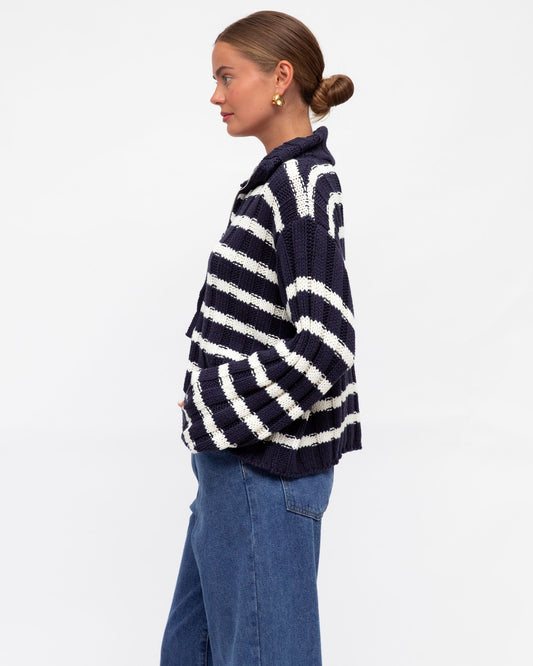 TF10307/O - FLUFFY STRIPE ZIP UP KNIT