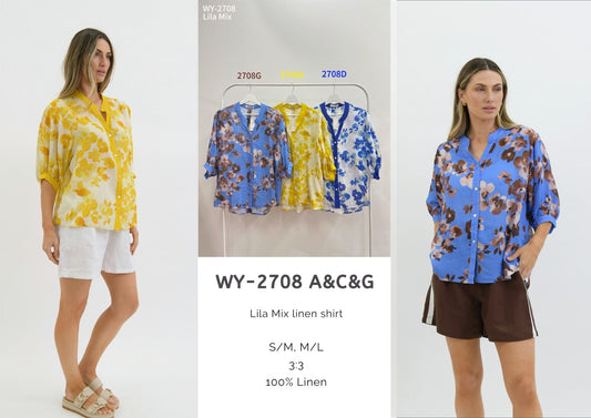 WY-2708A/C/G - LILA MIX LINEN SHIRT